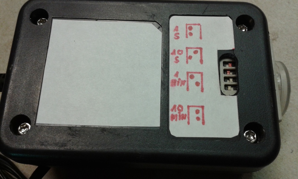 A dobozom hátlapján, kívülről hozzáférhető az OMRON négy DIP kapcsolója is, amelyek közül kettő az időintervallum beállítására, kettő pedig az üzemmód kiválasztására szolgál.