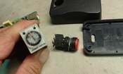 A "lövés" gomb, egy mikrókapcsolós, piros LED-es nyomógomb.