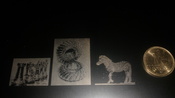 Alábbi képeket Mach2-vel csináltam egy P3-as laptoppal, 2.5Wattos kék lézerrel eloxál alura, de a mérete miatt kicsit érdekes lesz a felbontás.