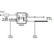 Segítségetekkel tovább léptem. Az öreg opto bemenetére a párhuzamos portról 3,92 V megy 230 ohm soros ellenálláson keresztül. Áramfelvétele 4,8 mA. Így a kimeneti ellenállás 1400ohm. Ezt rákötöttem a laser driver TTL bemenetére, így már kikapcsolja a lézert. Persze ez most fordítva működik, A Mach3-on fordítanom kell még.