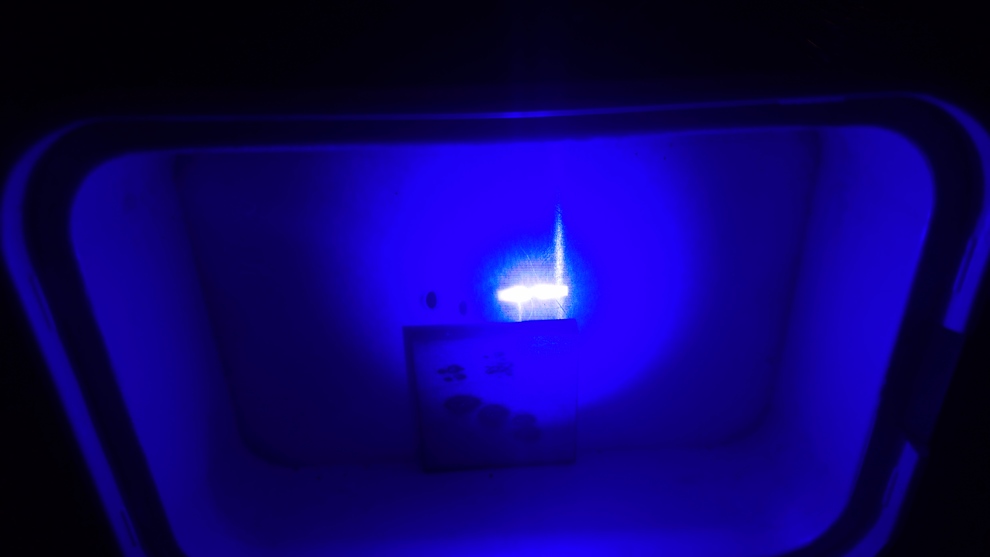 Régóta "fájt a foga" a kollégának, az én, kis kék lézeres, 2W-os gépemre.