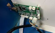 Ami még feltűnt, aktív hűtés nélkül fél-1 perc alatt jól felmelegedett, szóval mindenképp kell a ventilátor! Pedig először csak 3.5A-ra állítottam a bemenő áramot. A vezérlőnél is írják, hogy pár amper felett kell a hűtés. Amely  be is bizonyosodott. Forumokat böngészve azt láttam, hogy sok esetben a nyák alján hűtik a vezérlőt. Egy hővezető lapot tettem az aljára és úgy rá egy hűtőbordát. illetve az alkatrész oldalán az egyik alkatrészére (nem tudom pontosan mi az) pedig egy A4988 vezérlő hűtőbordáját (vagy a kis IC-t kellene hűteni?). Kipróbálni nem volt időm, hogy így mennyire melegszik. Valami tartót kell még összeraknom amivel a gépre tudom fogatni. Ami kicsit megnyugtat, hogy van benne hővédelem így ha mégsem ok, akkor talán nem nyírja ki magát. A vezérlőhöz jár egy thermistor amely véd a lézer esetleges túlmelegedése ellen. Hogy hány fok körül kapcsol le még nem teszteltem. Amit talán így utólag másképp csináltam volna: a vezetékeket a NYÁKon átvezettem és alulról forrasztottam meg, így viszont kisebb bordát tudok felrakni csak. A képeken sok esetbe csak felülről forrasztották meg, így az egészet rá tudták rakni egy hűtőbordára. Mire rájöttem nem mertem visszaszedni, főleg, hogy a vezetékeket le is ragasztottam nehogy véletlenül megrántjam és kiszakítsam, összeérjen valamivel.