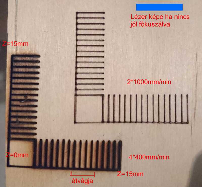 A ,,Z" tengely állítható, a fókusz távolság beállításához csináltam egy ,,létrát", minden egyes vonalnál 1mm-el emelem meg a lézert.
