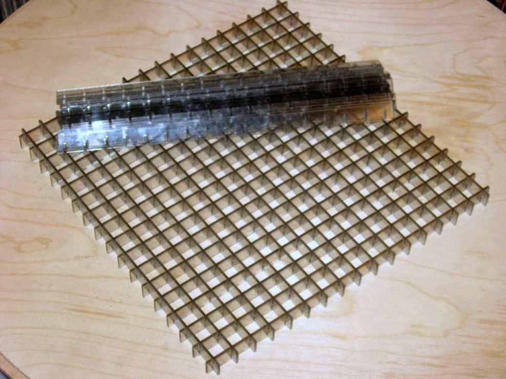 Utána már csak össze kell nyomogatni a csíkokat,és kész a kék lézer alá az örökös, könnyen tisztítható plexi rács.:)