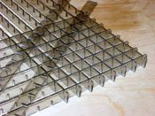 A k40-eshez a BAUHAUS-ban vettem expandált acéllemezt, kb. 6x12 mm-es rácsmérettel, 1600 Ft-ért.