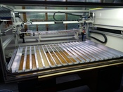 0,2 mm-es raszterrel "lődöztem" 2 mm vastag piros plexire, vagy plexibe lyukakat.