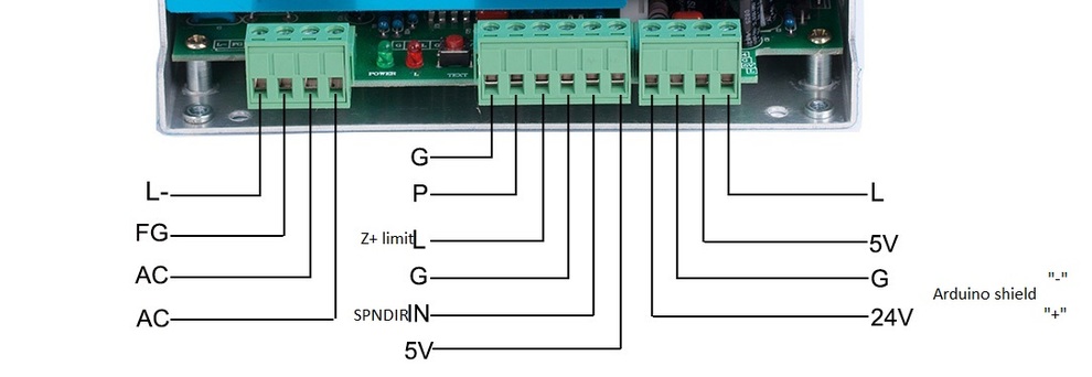 Szerintem a 6-os sorkapocshoz hozzá sem kellett volna nyúlni. A 4-es L kapcsába kösd a Z limitet, a Spindirt pedig sehová. A GND pedig közös ha külön tápról megy a shield.