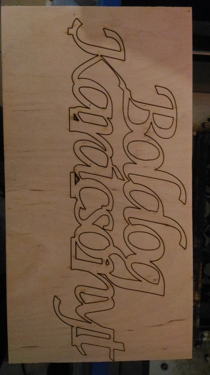 Próbáltam ebben a nagyhidegben is alkotni egy olyan feliratot amit már szépen megy csinált a gép, viszont most ahogy a képen is látszik elmászik vágás közben es a második kanyarra már mm kel odébb kezdi el vágni :(
