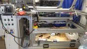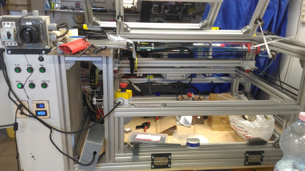 Egy 80W os cső a lelke a munkaterulete 800x550 kb, az asztal állítható kb 0-170mm tartományban, mellékelek képeket de a kupit ne nézd:)