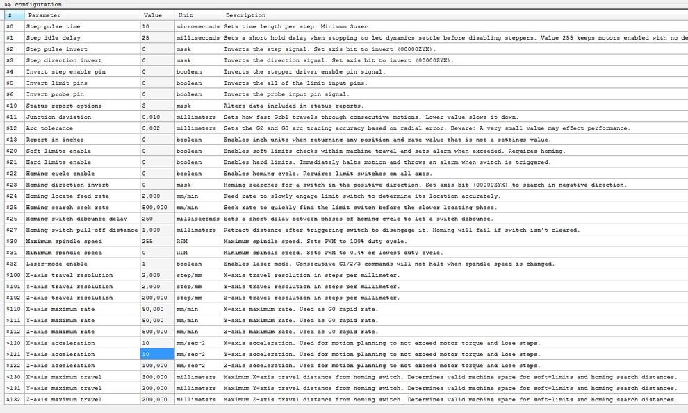1.1 -es GRBL -t használsz? a 0.9 nél és előbb más $x -en voltak ezep a paraméterek