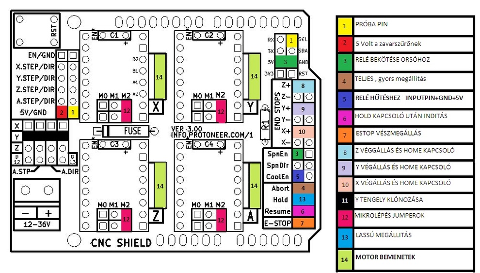 Arra figyeljetek, hogy GRBL 1.1-nél a ,,Z limit" és a ,,Spindle Enable" fel van cserélve.