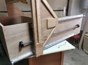 A munkaasztalt is elkészítettem és beszereltem, ezen van jelenleg a próba elektronika panel. Most tervezgetem, hogy fogom elrendezni a vezérlőket, tápokat, és a 380V-os fordulatszám szabályzót. Elég szűkösen kell kicentiznem mindent mert bal oldalra bekerül egy 22 colos monitor, jobb oldalra egy laptop, a laptop mögött lesz a 380 V-os forulatszám szabályzó felül, és tőle balra a belső hátfalon a 4 db teljesítmény meghajtó az asztal lapja alatt. Egyenlőre ez a terv, de még változhat kicsit. Az asztallap is méretre van már vágva, de még nincs felszerelve azért, hogy könnyebb legyen a gép belsejében vezetékezni.