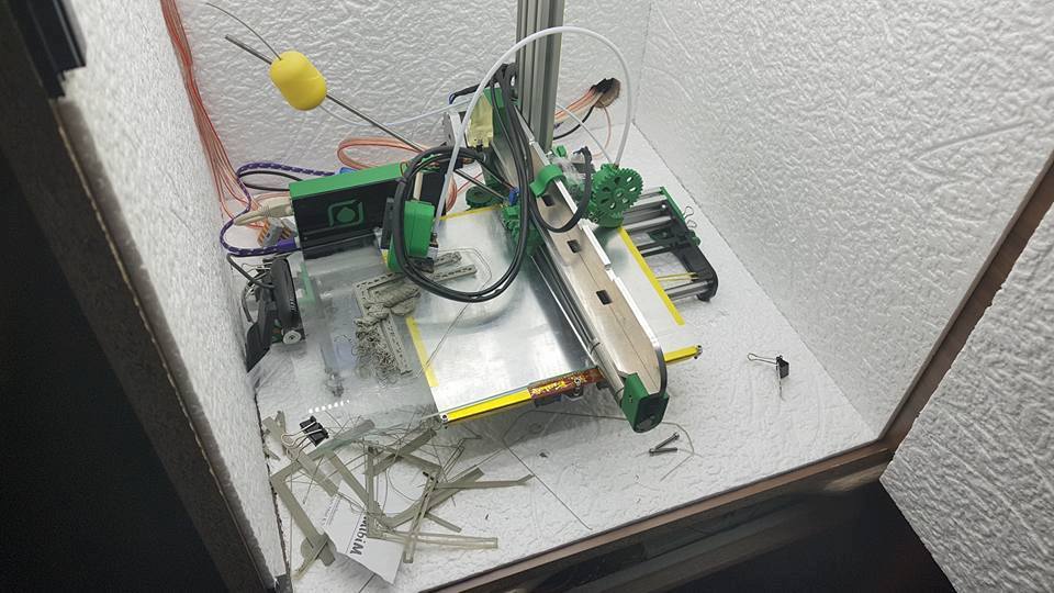 A temperált kamrában a benti megnövekedett hőmérséklettől meglágyúlhattak a gép PLA alkatrészei aztán szépen széttépte magát a gép.