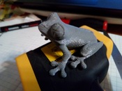 Pár napja megjött ebay-ről a műanyag asztal (PEI sheet helyett rendeltem kipróbálni, mert olcsó volt. Én épp 1442.56 forintért vettem) eddig egy PETG és egy ABS (fej: 250C, 245C; asztal: 95C, 90C) békát nyomtattam 0.3mm-el gyors tempóval.