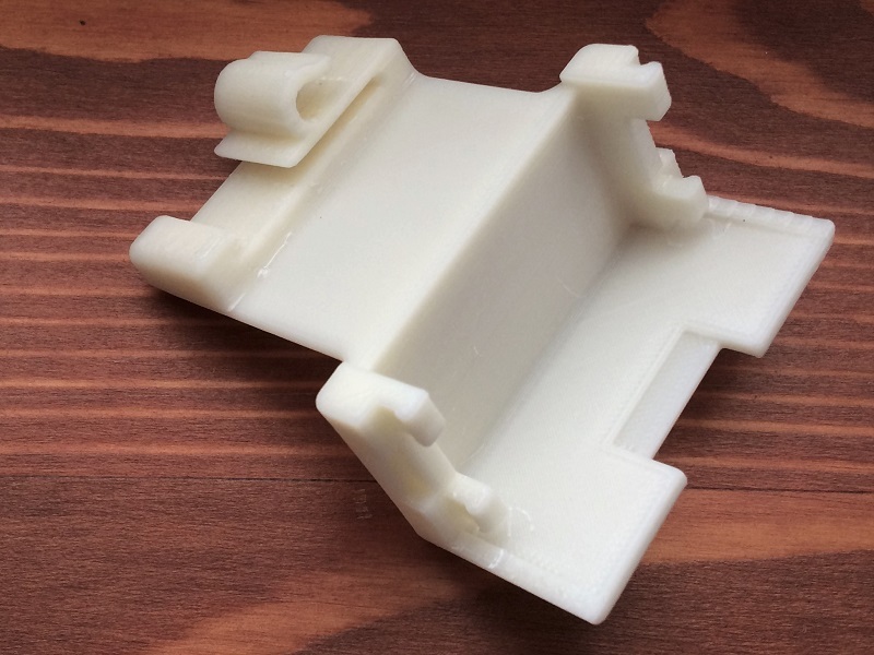 Zortrax M200 megjött, kicsomagoltam, kábeleket csatlakoztattam, asztalt beraktam, bekapcsoltam. SD kártyára kérte az új firmware felmásolását, majd auto kalibráció (ami inkább félautomata). PC-re szoftver installálás. Ennyi volt a beüzemelés. Demo kocka nyomtatása, másodjára pedig a képen szereplő alkatrész ABS-ből. Tényleg plug and play.