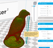 Makerbot szoftvere sem csinált normális támasztékot a csőrére , meg a modellel is baja volt .