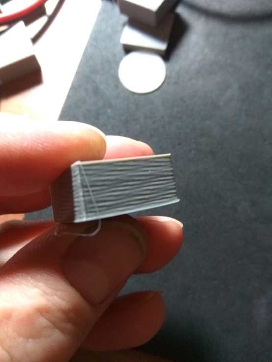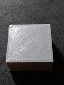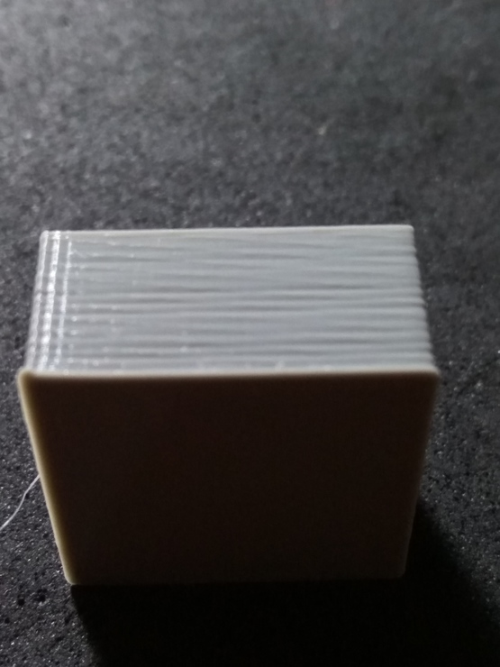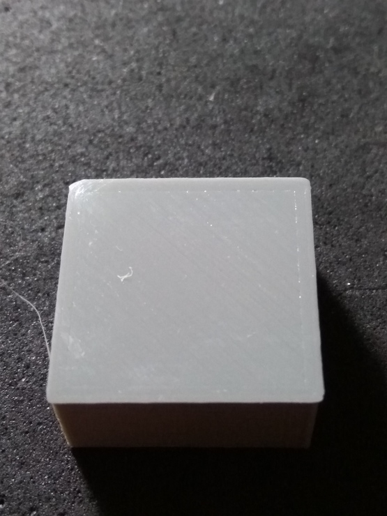 A próba darabok így néznek ki, mind a 4 oldal azonos "mintát" mutat. Próbáltam többféle beállítással (sebesség, hőmérséklet, gyorsulás...), mechanikai finomhangolással javítani rajta de nem nagyon változik. A fej PID kalibrálása is megvolt, tartja a 200 fokot. Van tárgyhűtés. Az alapanyag jó, másik gépen tökéletes eredményt produkál azonos modellel. Az alaplap MKS Sbase 1.3.