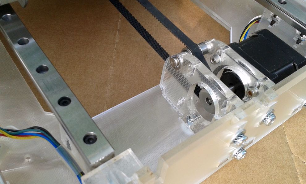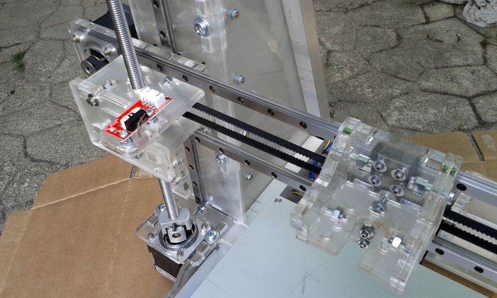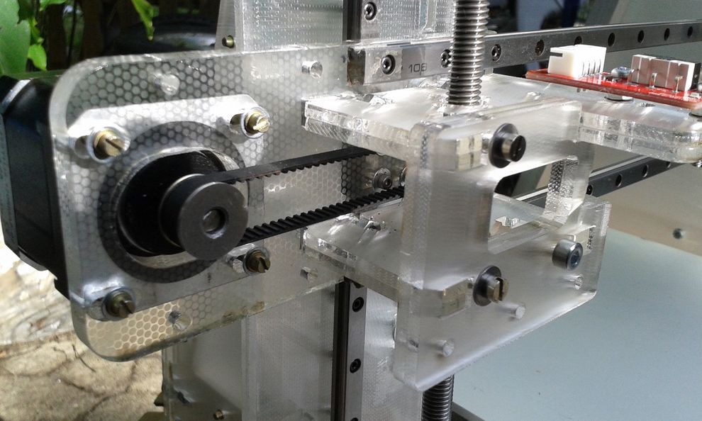 Miért van három Z motorod? Egy motor elég felül szíjjal, vagy kettő alulról de akkor le kell venni a szíjat. Vagy úgy tervezed hogy ez a megoldás flexibilis, mind a két fajta hajtást kipróbálod és úgy hajtod végül amelyik jobban meg tetszik tesztek után? Na meg az sem nagyon tetszik hogy az X és Y sínek levegőbe vannak. Szerintem jobb lenne azokat is merevíteni.