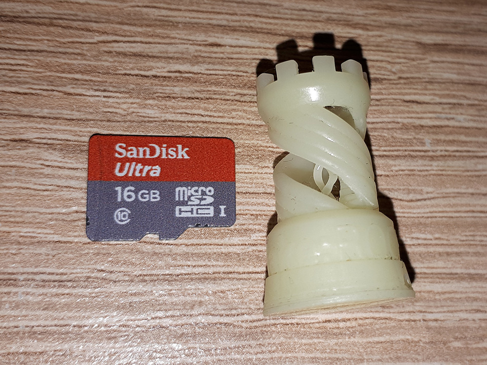 Az első ~1-2 tized mm réteget be kell "égetni" hogy jó legyen a tapadás, ettől viszont rendre ugyan ennyivel szélesebb lesz az alsó réteg, ami egy ilyen mini fogaskeréknél megengedhetetlen.