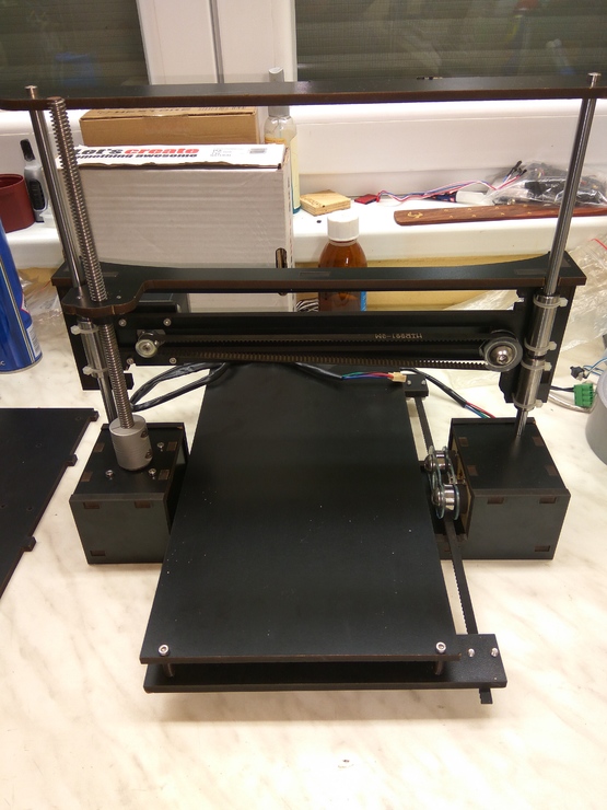 Egy Z motor szerintem csak akkor jó ha két Z orsót hajt, de annak ellenére egy Z motoros 3D printer van sok aminek csak egy orsója van, bár én nem hiszek jó működésén. Na meg az sem tetszik hogy a Z orsó nincs rögzítve felül. Szerintem azt fontos rögzíteni mert ha lobog mint egy zászlórúd akkor az elrontja a nyomtatás eredményét ha nem nagyon-nagyon lassan hajtod.