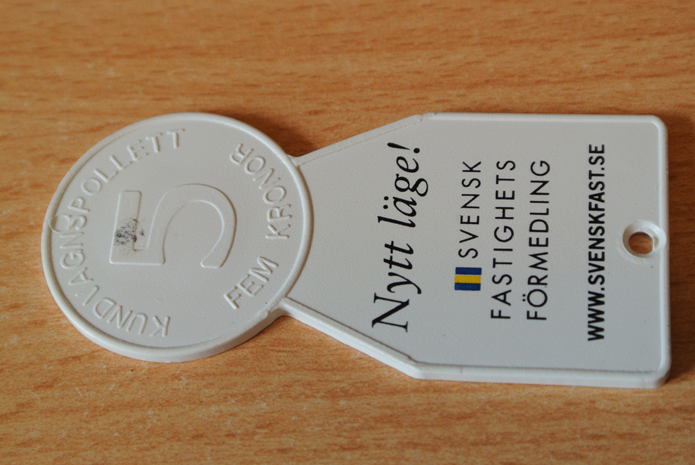 Már meguntam, ha vásárolni megyek, soha nincs a zsebemben apró, váltani pedig csak nehezen lehet, így gondoltam legyen egy olyan zseton a kulcstartómon, ami alkalmas a bevásárló kocsiba érme helyett.