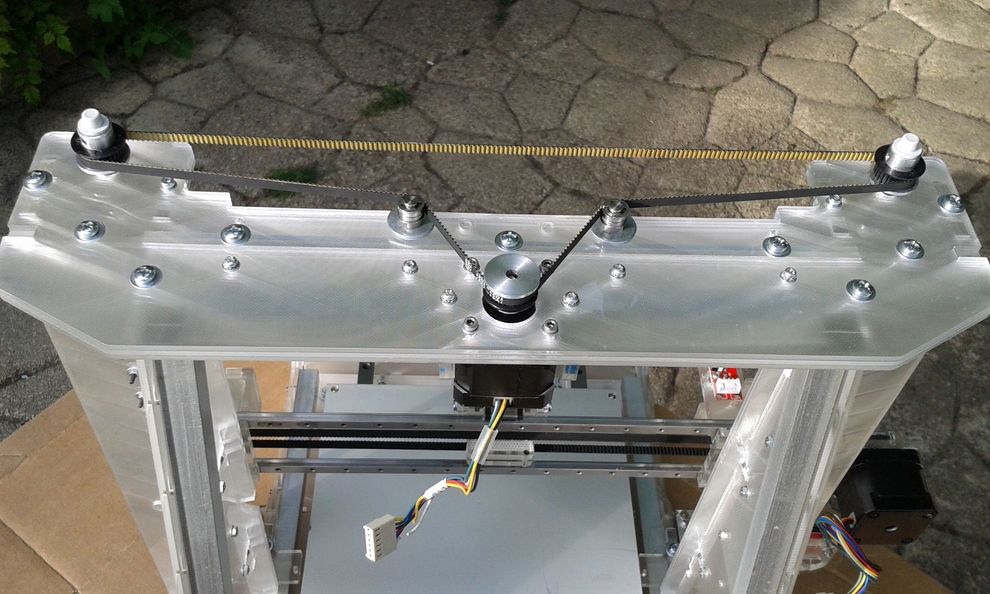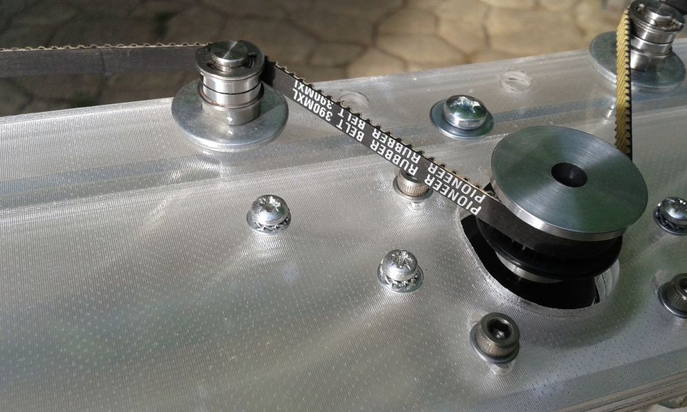Sőt, a két "Z" motor helyett, csak egy motor hajtja a két oldal "orsóit", felül összekötött szíjas szinkronnal.