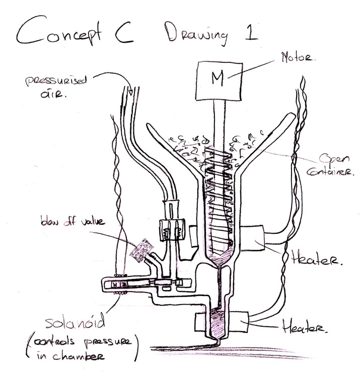 Elég elvetemült rendszer.... Gondolom a vezérléssel valahogy azt is megoldják, hogy amikor a légszelep kiengedi a nyomást, az extruder is álljon meg, különben egy idő után megtelik az alsó tartály olvadékkal, amit ha jól látom már nem melegítenek, így bele is dermedhet. Az sem tűnik túl korrekt megoldásnak, hogy a változó mennyiségű olvadékot sűrített levegővel adagolja. És mennyit is? Mert a szelepen és a tápcsövön jövő levegő összenyomhatósága miatt eléggé rapszódikusan fog ugrálni a nyomás. Vákumot nem látok, tehát visszahúzás nincs, csak kevésbé fog csöpögni a fúvóka amikor lecsökken a kamranyomás. Nesze neked tized mm pontos száladagolás/visszahúzás! [#nyes]