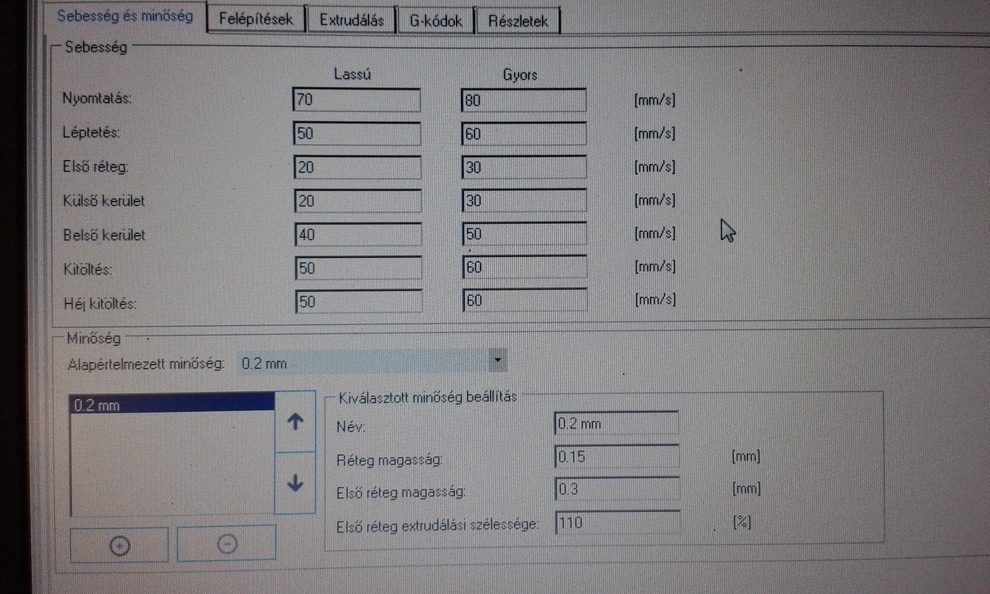0,3-as fúvókával, 0,1-0,2 réteggel, de sok múlik a tárgyhűtés milyenségén/intenzitásán is.