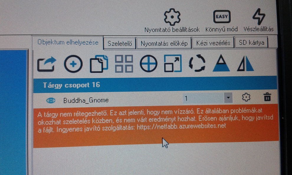 Megcsinálja, a szeletelést,-Cura is, Slic3r is- ki is nyomtatja, de ezt az üzenetet nem igazán tudom értelmezni.
