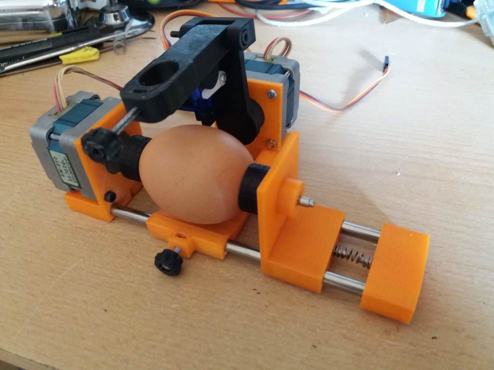 Sziasztok! Ma végre elkészült az egg-bot utolsó alkatrésze is és sikerült összeraknom a mechanikát. Már csak az Arduino UNO rákapcsolására vár. Esetleg nincs Bpest környékén valaki, aki segítene ebben? A fő gondom, hogy nyomtatóból bontott léptecseim vannak, amiről fogalmam sincs mekkora áramot bírnak el és mekkora a lépésközük. Az Inkscape beépülőben meg sehol sem találtam lépés/unit beállítási lehetőséget. Jó lenne, ha az első bekapcsolásnál nem történne pápaválasztás (felszállna a füst). [#csodalk]