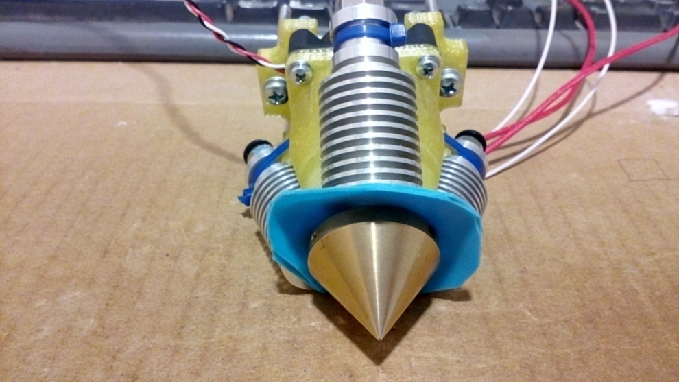 Nemrég egy 2in1 (cyclops) fejet alakítottam át két külön fejjé és azzal kísérletezem, de azzal sem sikerült szépen két színnel nyomtatni egyszerre. Külön-külön szépen nyomtatott két színnel.