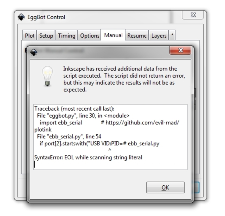 Most máűr biztos, hogy az USB porttal van a baja. Átírtam az általad javasolt VID/PID értéket és azóta más hibaüzenet jelenik meg az Inkscape-ben: