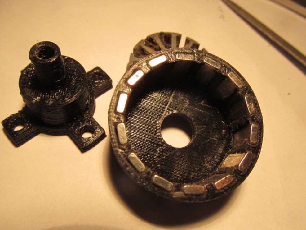 Későbbiekben szeretnék egy drónt építeni,ehhez próbaképpen nyomtattam egy brushless motort. A forgórész majd a biztonság kedvéért kap egy vékony alumínium palástot,hogy ne tudjon szétrepülni. A tekercselés még hátra van.
