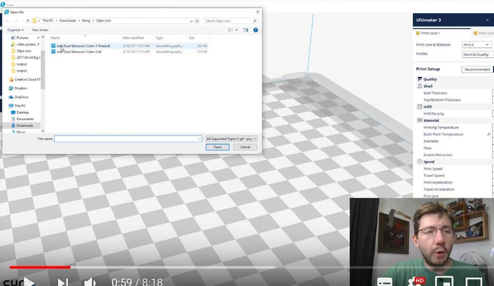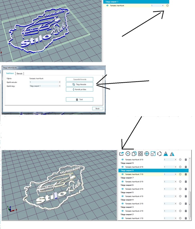 ha külön szinenként akarod kinyomtatni majd össze rakni akkor szét kell darabolni az stl t Repetier-hostak meg cura val is meg lehet csinálni majd külön stl re elmented és máris nyomtathatod de ha elküldöd megcsinálom szivesen
