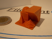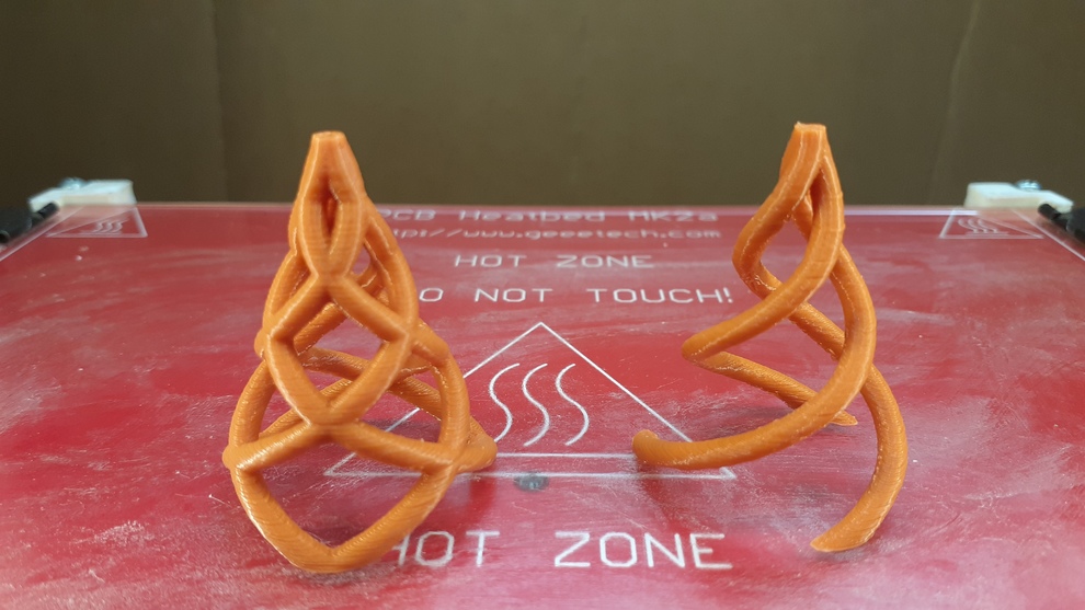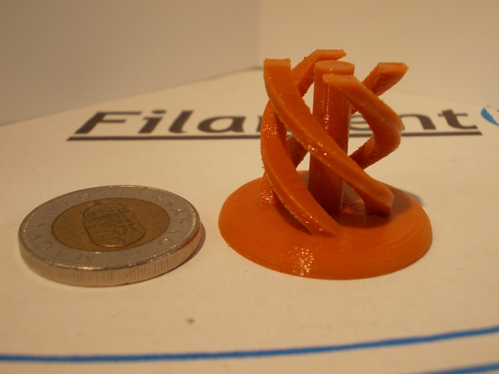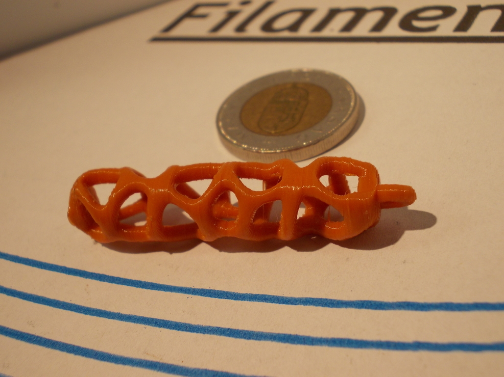 A 20x20 mm-es élhosszú "lyukas kocka" függőleges szárai a legvékonyabb résznél, kb. 1x1 mm keresztmetszetűek.