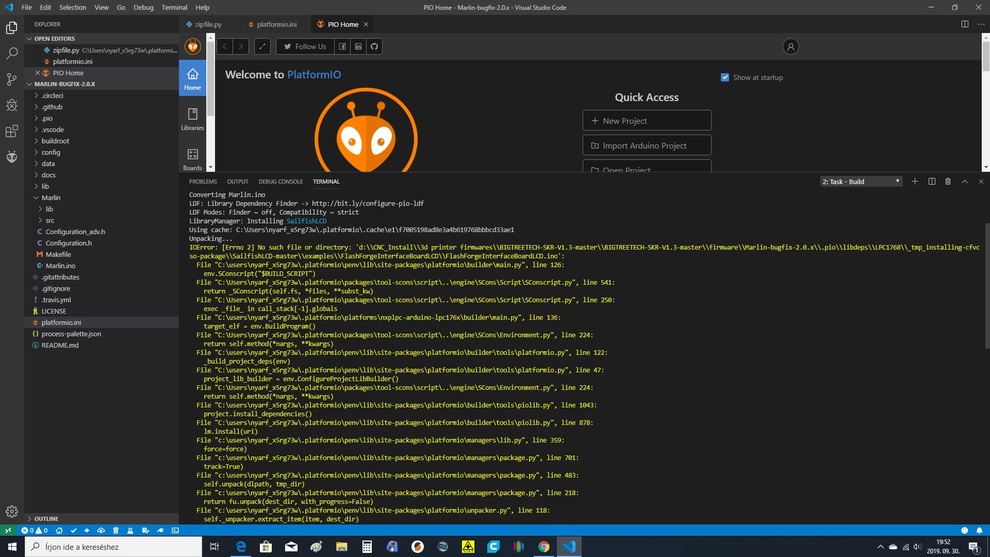 Nem nagyon sikerült megértenem [#conf] átolvasás után inkább még jobban összekavarodtam. De ami még jobban bosszant, hogy a Marlin az elején elvérzik amikor még csak a könyvtárakat csomagolja ki és installálja. Még csak az alapot fordítottam le belepiszkálás nélkül. Kicsit nem értem.