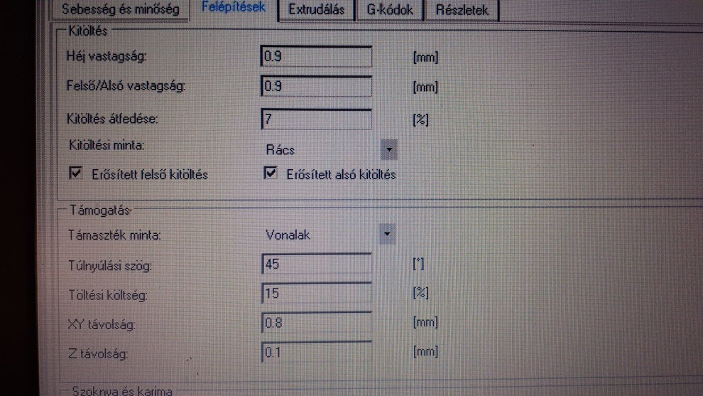 Ezeket nem szoktam állítgatni, ráhagyom a Cura-ra. Most épp ezt "ajánlotta" fel.