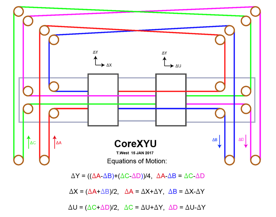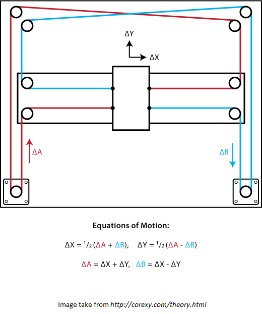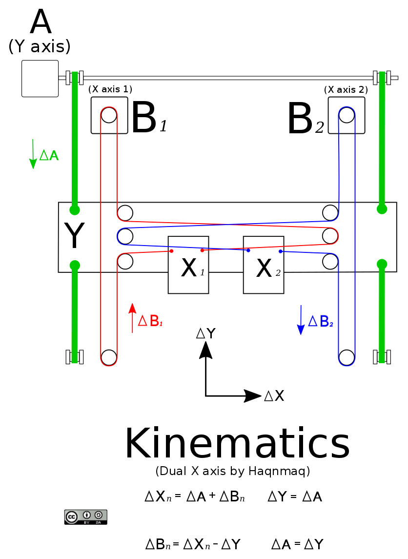 CoreXY elrendezés dupla X kocsival.
