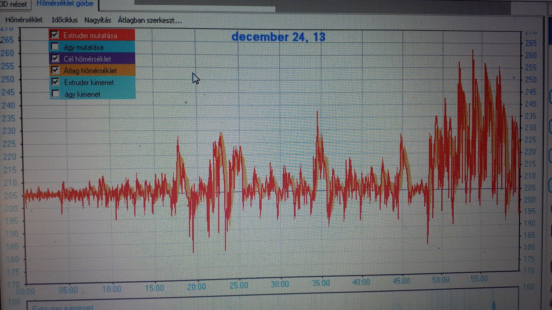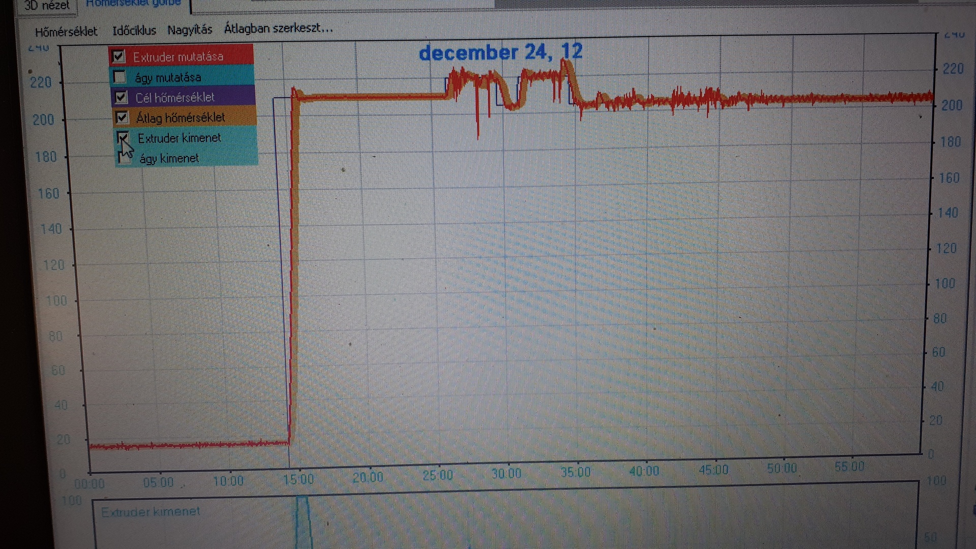 Egy, másfél, két óra után, látszólag minden ok nélkül "megbolondul" az extruder hőfok szabályzása.