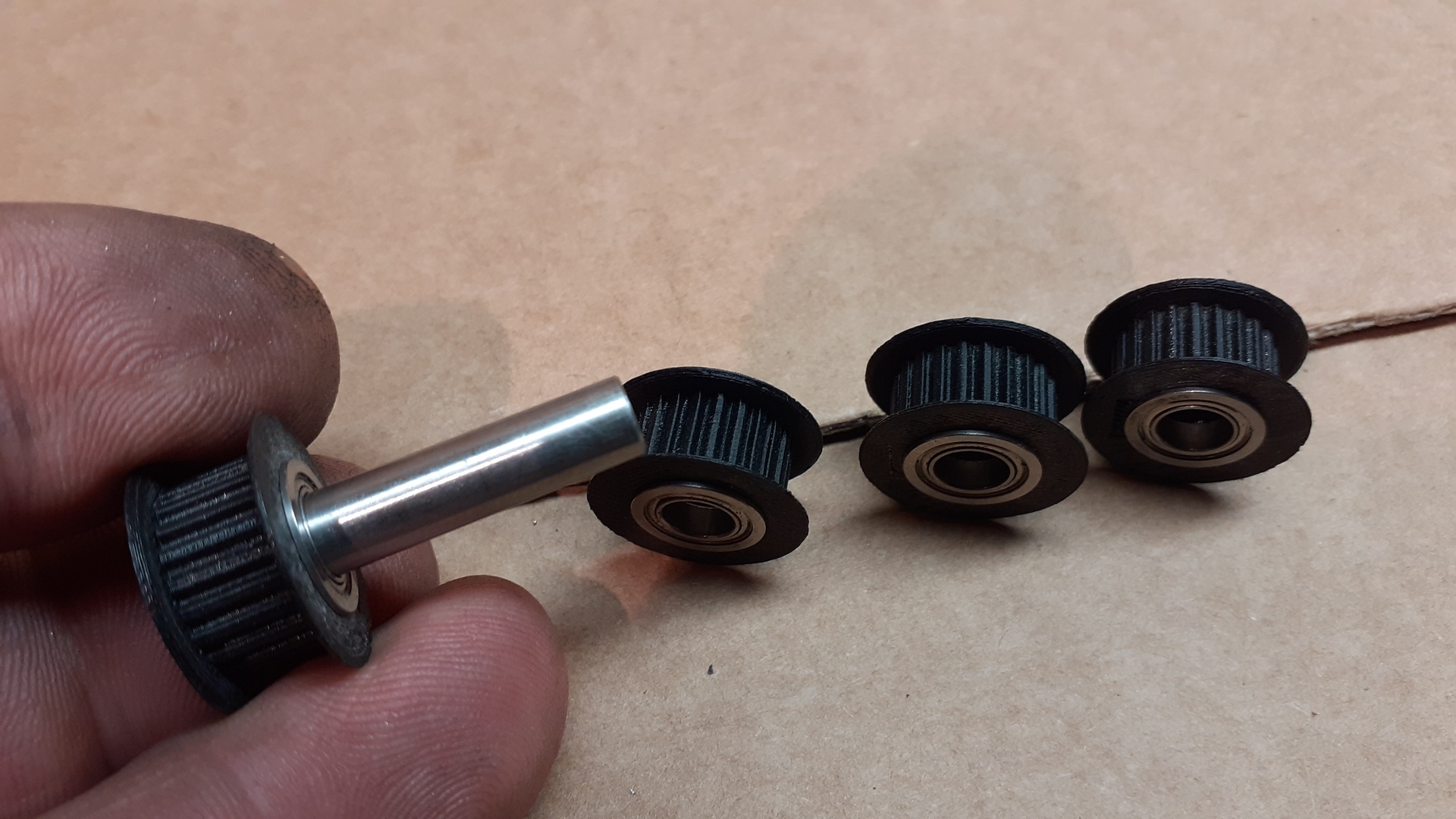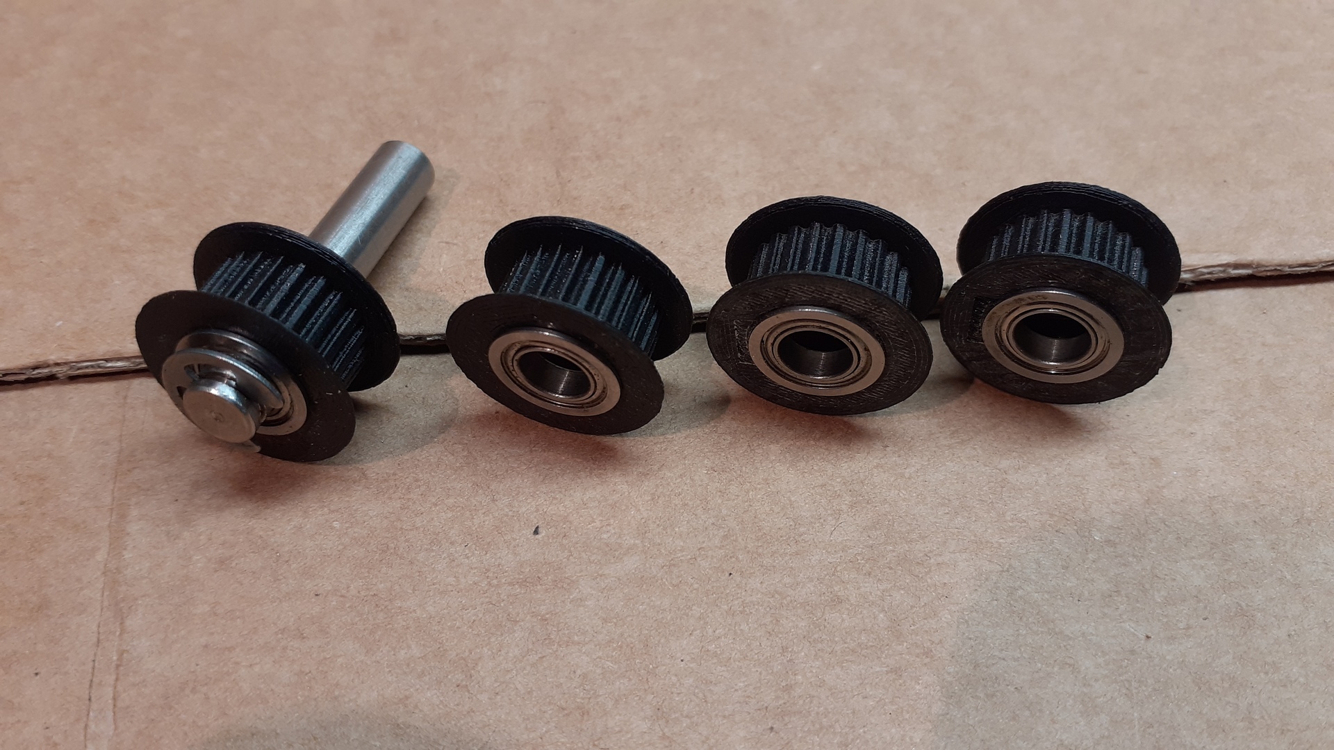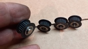 MXL méretben, 22 foggal, 6.35 mm széles szíjhoz, két-két válas csapágyon futnak.