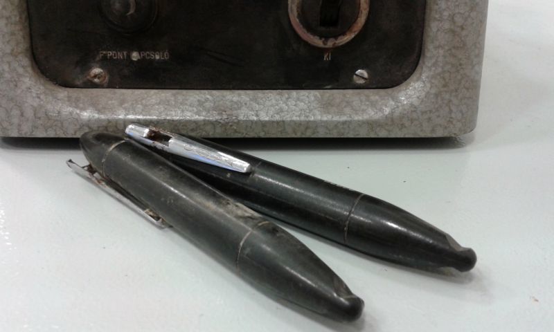 Rá van írva hogy dózismérő. Alighanem a tollakban egy kis üvegkapszula rejlik amiben egy feltölthető elektroszkóp van.