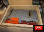 A tengelyből ki lettek szedve a kések és meg lett csinálva asztali körfűrésznek egy jóval nagyobb motorral meg fűrész tárcsával