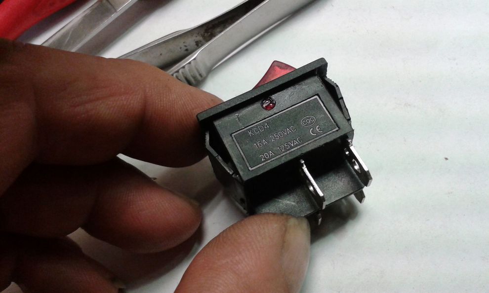 Egy kommersz, közismert kétsarkú "világítós" billenőkapcsoló.