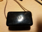 A fene sem tudja hol gyártották az eredetit. Az enyém fekete bakelit, és a logója talán egy stilizált bikafej, vagy fejre állítva egy kalap?