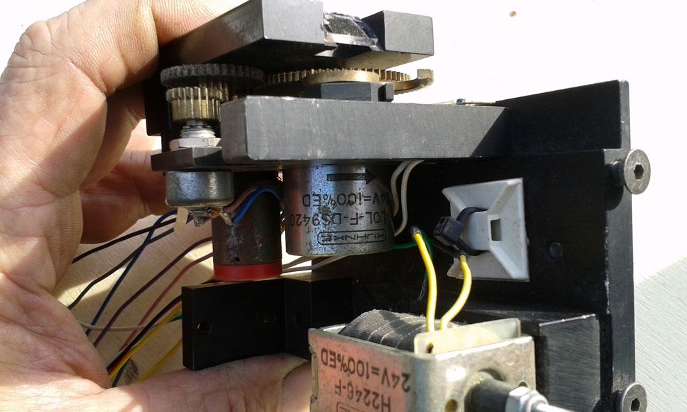 Van benne kicsi DC motor, fogas íven állítódó optika, két szolenoid(egyik forgó), motoros poti, tükör, optikai érzékelő....