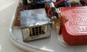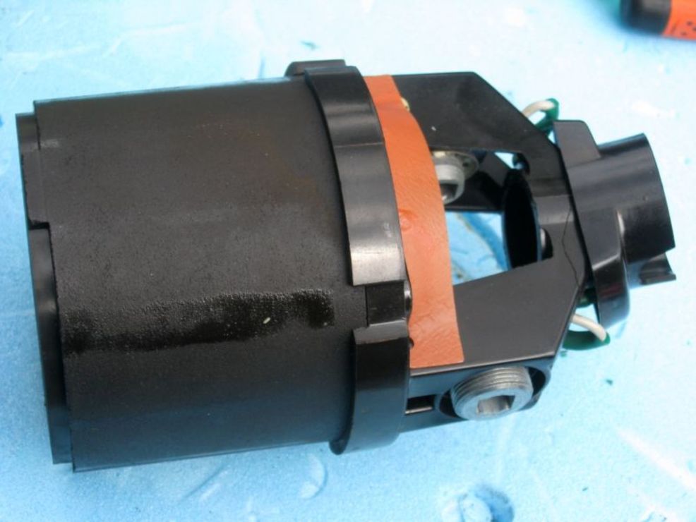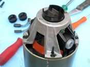 -a motor bakelit testbe ágyazása a gép fémházán belül.