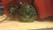 Teszek fel egy képet az olajszivattyúról is azt hiszem a középső gyűrű van kikopva ami nem feszíti kellőképpen szét a lapátokat és ott elszökik az olajnyomás.(ezért kellett szétszednem mert nem volt olajozása, az előző gazdáját gondolom nem érdekelte hogy melegszik a főorsó és csont száraz minden fogaskerék így kopnak el ezek az amúgy strapabíró gépek...)