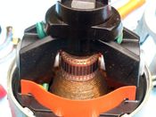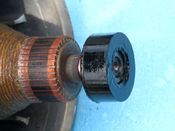 -a kommutátor oldali csapágy, bakelit perselyben fut.