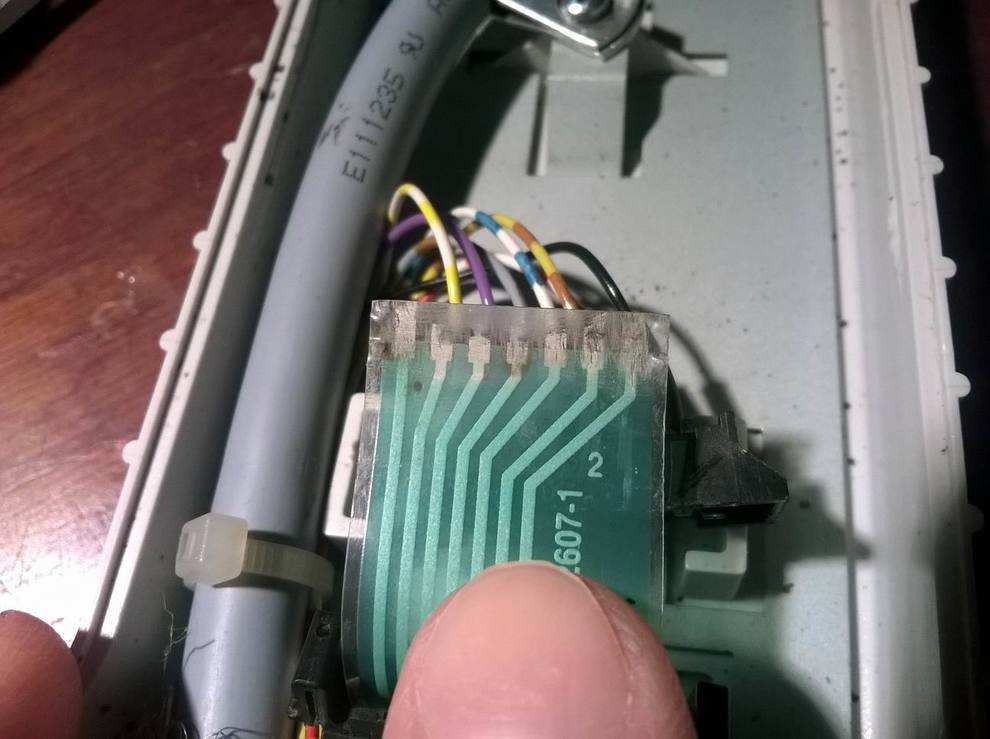 Hajlékony nyák darabból marass vagy faragj ki egy érintkezősort, majd vékony huzallal kösd be az eredeti fólia csíkjaira. ( Ami szerintem forrasztható, ha mégsem akkor a huzalokat vezető ragasztóval rögzítsd. ) Majd oldd meg azt a problémát ( hajlítás, rezgés, korrózió stb ) amitől az eredeti tönkrement.