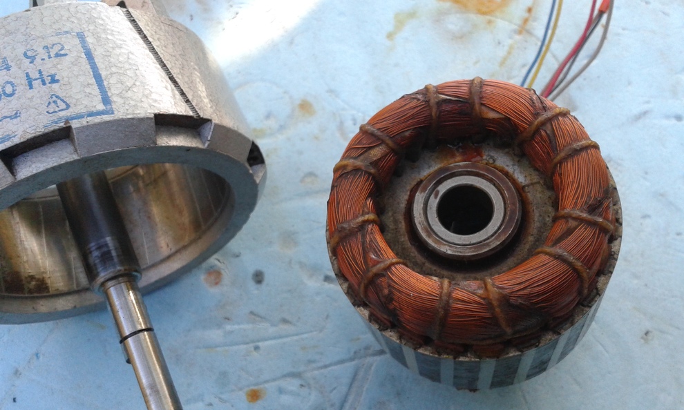 Szétszedve az is kiderül róla, hogy Ő egy kétpólusú motor, szintén  háromfázisú, szimmetrikus, 120 fokos tekercseléssel.